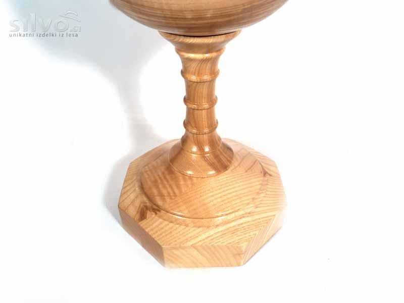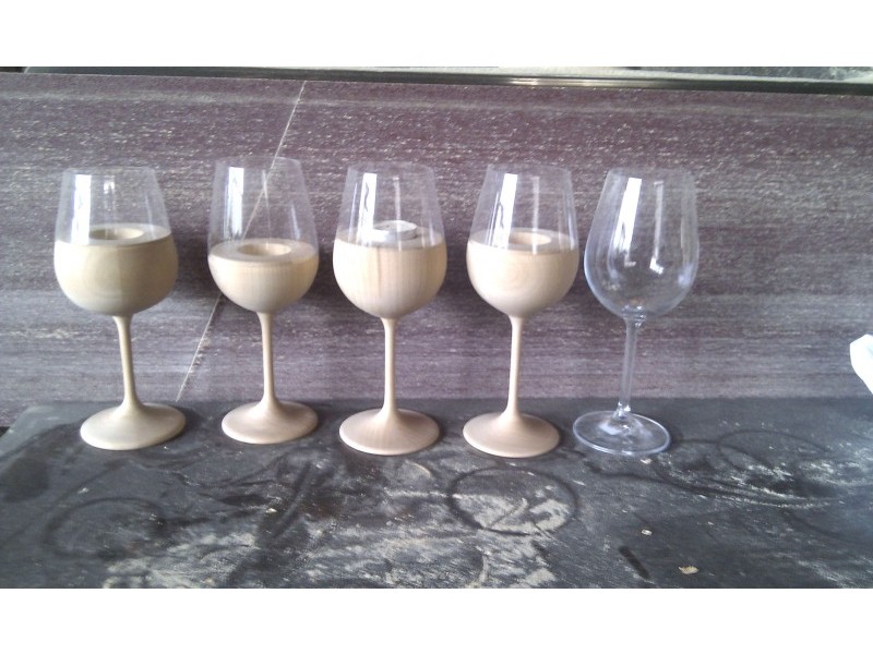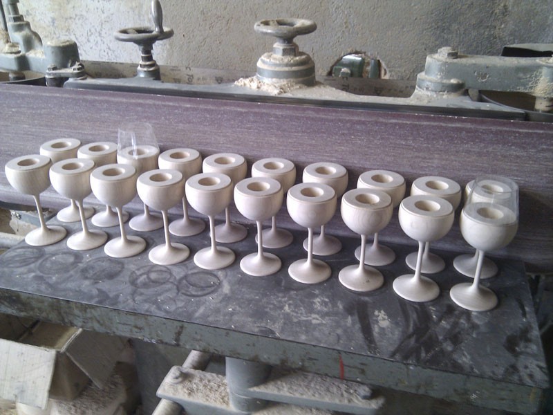 Po naročilu kupca smo izdelali nekaj lesenik kozarcev, ki se uporabljajo kot svečniki. Kozarci so precizno ročno postuženi ter imajo identično obliko kot stekleni kozarci za vino.